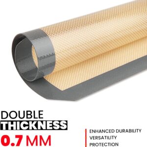 The fiberglass-reinforced cookie sheet mat core ensures uniform heat distribution, preventing hot spots and delivering
