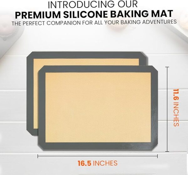 Silicone Baking Mat – 2 Pack Reusable Nonstick Baking Sheet Liners (16.5″ × 11.6″)
