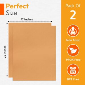 - PREMIUM QUALITY: Set of 2 large 17″x 25″ heavy-duty non-stick oven liners for the bottom of electric ovens fits most standard-sized ovens and can be trimmed to fit custom sizes. A great alternative to aluminum foil, oven mat for bottom of oven protect your oven from spills and can withstand up to 500°F (260°C).