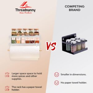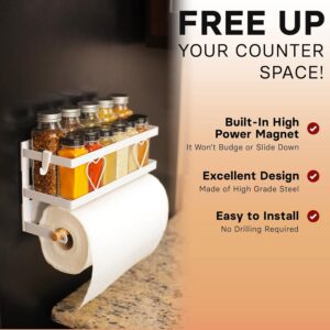 - ✔ MAGNETIC SPICE RACK LARGER THAN MOST COMPETING BRANDS: Significantly larger than other brands, our magnetic shelf spice holder for refrigerator with a paper towel holder is 12” L x 4.5” W x 6.5” H in dimensions. Features walls on its front and sides to keep your spice jars securely. Magnetic spice rack for refrigerator that lets you effectively free up your countertop.