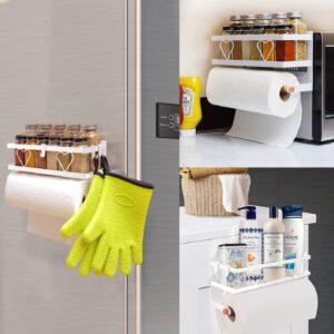 - ✔ 1-PACK MAGNETIC SPICE RACK WITH PAPER TOWEL HOLDER & FREE 3PCS HANGING HOOKS: Fridge magnetic organizer with free 3 pieces hanging hooks (the spice jars and the other items on the rack are not included). Superior quality magnetic refrigerator organizer that features a unique and modern design with smooth rounded edges. Very easy to install with no drilling required.