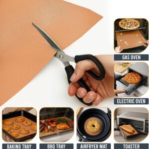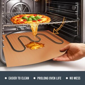 - PREMIUM QUALITY & SUPERIOR DURABILITY: 3-piece set of large copper oven liners (17″ x 25″), made from extra-thick 0.28mm heavy duty non stick material, thicker and more durable than standard liners on the market. Built to withstand high heat up to 500°F without warping or damage, providing long-lasting protection for the bottom of ovens. Easily trimmed for a perfect custom fit, these liners are a better, more reliable alternative to aluminum foil and sheets.