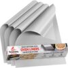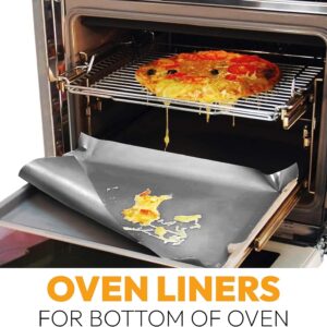 - REUSABLE & DISHWASHER SAFE: Removable and can be used over and over. Wipe clean or rinse off effortlessly every single time. When used as oven liner, place them on the lowest rack or tray in gas or electric ovens with a hidden element. For electric ovens with an exposed heating element, slide them correctly under the heating element at the bottom of the oven floor. Avoid direct contact with the heating element or open flame.