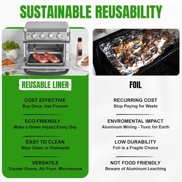 The best thing is that these liners are built to last. The non-stick surface effortlessly prevents food from sticking, making post-cooking cleanup a breeze. Wipe down the liner with a damp cloth or clean it in the dishwasher for hassle-free maintenance. Not only are they convenient, but they’re also eco-friendly. Ditch the wasteful parchment paper and embrace these reusable liners, saving you money in the long run and reducing your environmental impact.