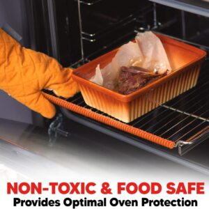 Keep your kitchen safer with our Silicone Oven Guards for Racks. Designed at 22 inches long, these heat resistant silicone rack shields fit securely on standard oven racks and range edges to help prevent painful burns and scars. Made from premium food-grade silicone, they are flexible, durable, and easy to clean. Perfect for everyday cooking and baking, these bright orange oven protectors provide both safety and peace of mind for the whole family.
