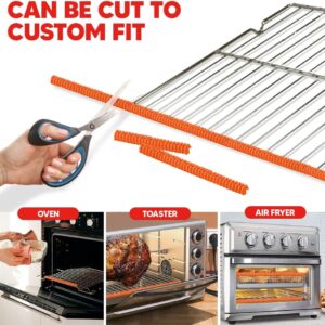 - FITS ALL OVEN RACKS: 22-inch long silicone oven rack edge protectors that easily and securely attaches to the edge of any oven rack. You can conveniently cut it to fit your oven of any size. The silicone lining grips into place and is slip resistant. You can use it for other home appliances like toasters and air fryers.