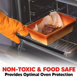- LAB-TESTED FOOD GRADE: Our oven guards are made from lab-tested food grade material – BPA and PFOA Free. Our silicone rack protector does not add flavor or smell to your food. Cheaper products leach hazardous chemicals when heated in the oven, as they are made from recycled materials. It’s made to last, and it effectively retains its flexibility and durability.