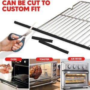 - CAN BE CUT TO CUSTOM FIT SMALLER OVENS & TOASTER GRILLS: 22-inch long oven protector that easily and securely attaches to the edge of any oven rack. You can conveniently cut it to fit your oven of any size. The silicone lining grips into place and is slip resistant. You can use it for other home appliances like toasters.