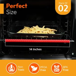 - OVEN SHELF GUARDS: 14-inch long Silicon oven rack edge guards / protectors or cover that easily and securely attaches to the edge of any oven rack. You can conveniently cut it to fit your oven of any size. The silicone lining grips into place and is slip resistant. You can use it for other home appliances like toasters and air fryers.