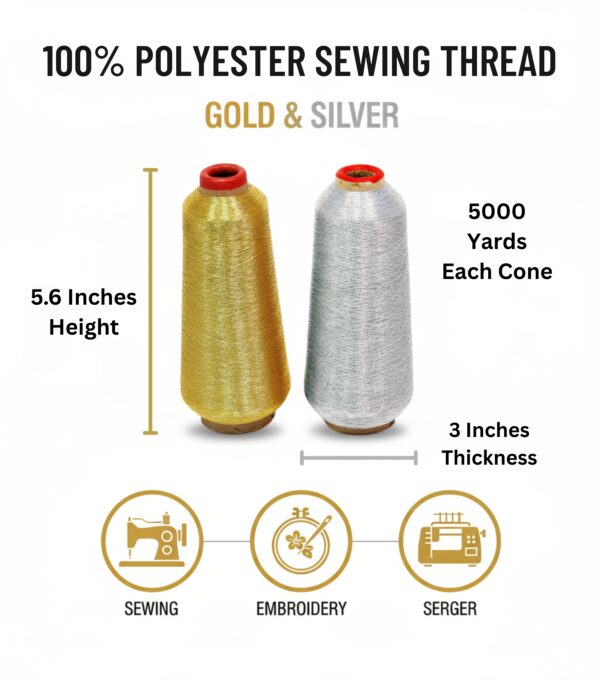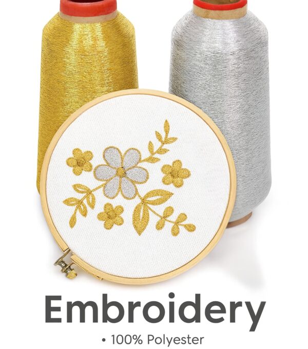 Buy the Gold & Silver Metallic Machine Embroidery Threads – 10000 Yards directly from the